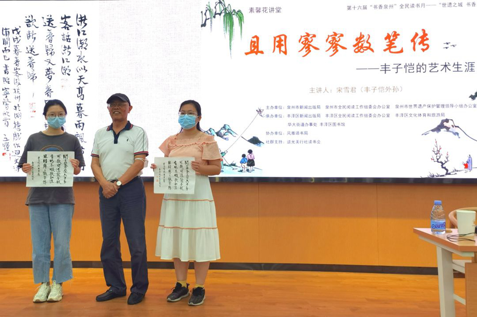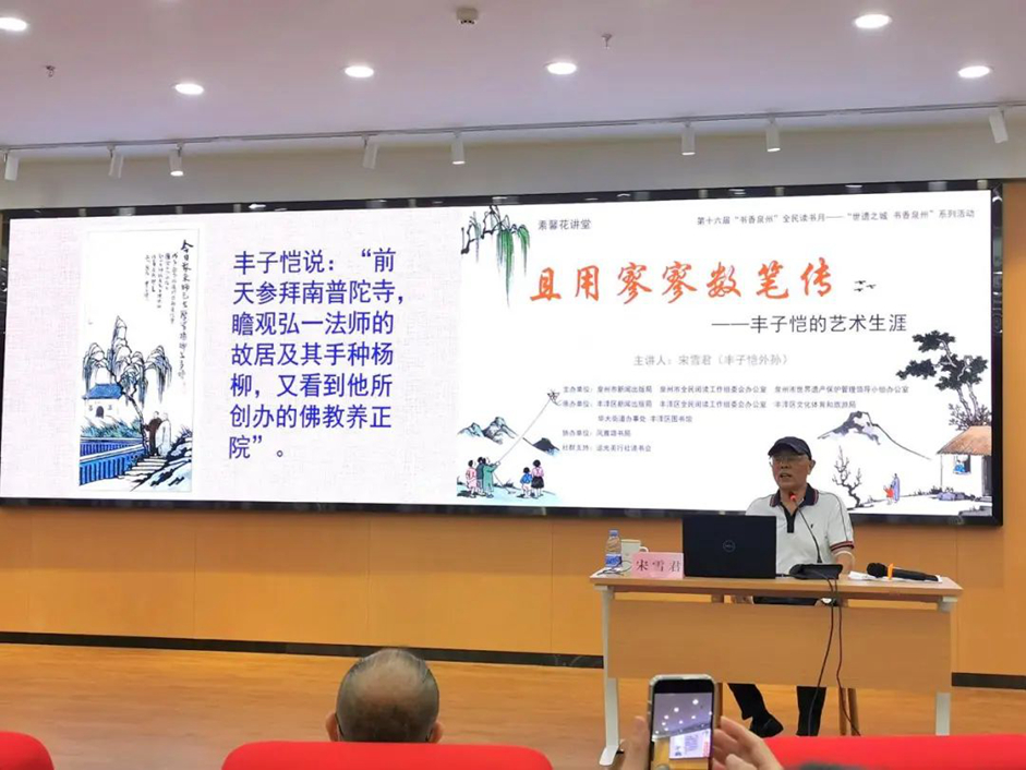 开展仪式后,在丰泽区图书馆四楼学术报告厅举行了“素馨花讲堂”活动,由丰子恺外孙宋雪君老师分享《且用寥寥数笔传——丰子恺的艺术生涯》主题讲座。
