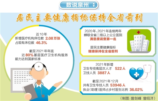 这十年,泉州医疗资源大大扩容了——随着市第一医院城东院区二期病房楼、市中医院新院区、福医大附二院东海院区、市老年医院、光前医院综合病房楼等相继投用,全市共新增医疗机构床位数2.08万张,占现有床位数的46.3%,扩建基层业务用房超过25万平方米。