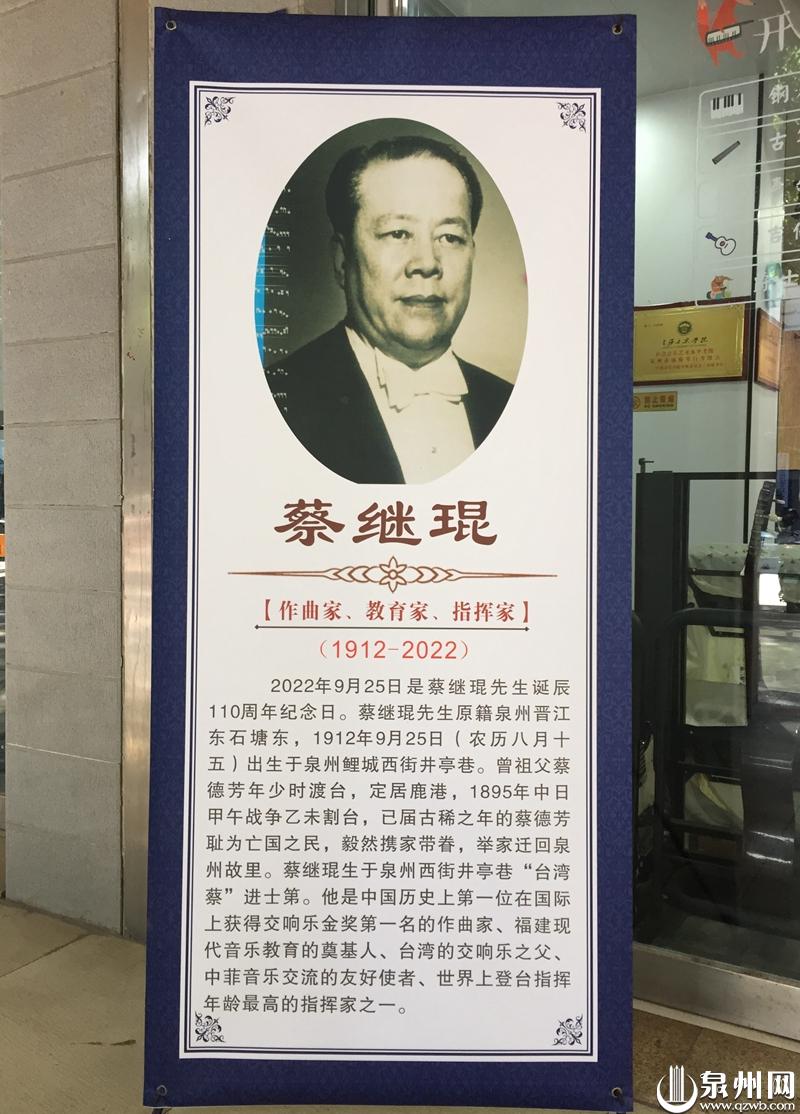 活动策划者林亚立介绍,蔡继琨是我国著名的作曲家、指挥家和教育家,他原籍泉州晋江东石塘东,1912年9月25日出生于泉州鲤城西街井亭巷。其曾祖父蔡德芳年少时渡台,定居鹿港,1895年中日甲午战争后,已届古稀之年的的蔡德芳携家带眷迁回泉州故里。蔡继琨生于泉州西街井亭巷“台湾蔡”进士第,他是我国第一位获得国际大奖的交响乐作曲家,福建现代音乐教育的奠基人,中菲音乐交流的友好使者,台湾的交响乐之父。1999年,年近90岁的他成功举办交响音乐会,为自己60多年的指挥生涯画上了一个圆满的句号,也成为世界上登台指挥年龄最高的指挥家之一。