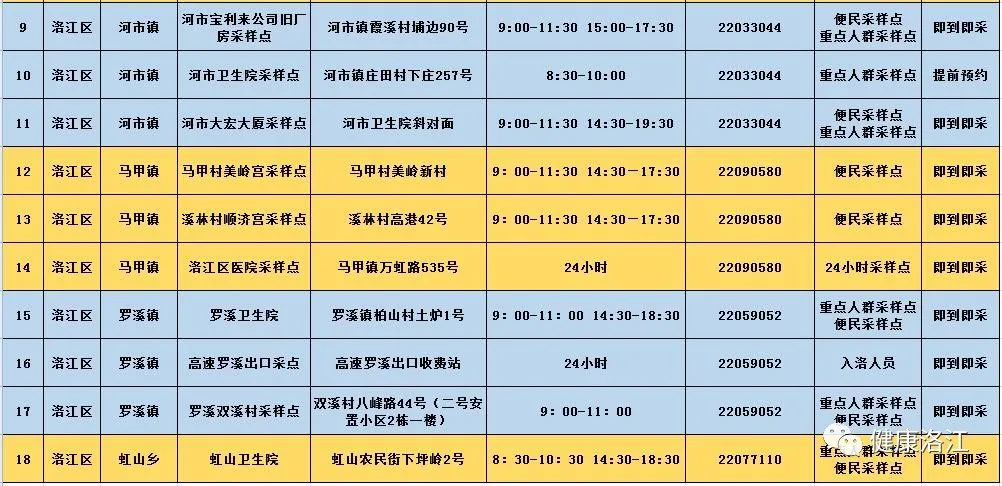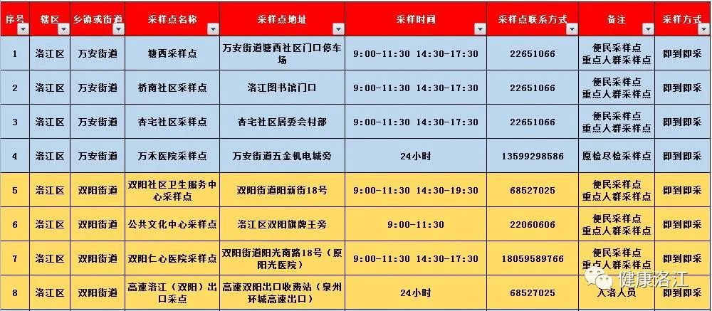 洛江区国庆期间便民核酸采样点一览表(2022.10.1-10.7)