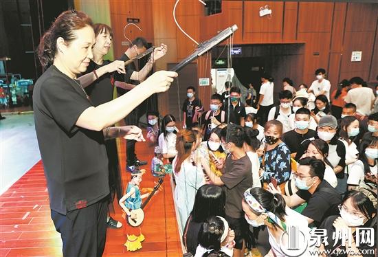 “没想到国庆期间有这么多游客朋友专门跑过来看一场木偶戏,可见我们泉州非遗文化魅力非同一般!今天我们安排了《小沙弥下山》《若兰行》《钟馗醉酒》《驯猴》《元宵乐》五个节目,让观众一饱眼福。节目最后还组织观众参与体验互动,大家乐在其中!”泉州木偶剧团团长洪世键介绍,国庆期间原本每天安排下午4点和晚上7点30分两场演出,因供不应求就每天临时增加了两场,现在演出人员每天都要演到晚上10点多。“木偶戏备受青睐,除了剧种本身的影响力外,也离不开2016年以来剧院每年在通政巷嘉礼馆开展200多场公益性演出,持续提升了木偶戏的影响力。”