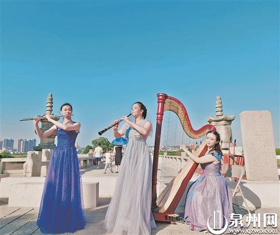 泉州网10月7日讯 (记者陈智勇 通讯员林莹莹 文/图)昨日下午,“文明旅游·悦享生活”大美洛江交响音乐会在世界遗产点洛阳桥举行,游客在世界遗产点感受高雅艺术,欢度国庆佳节。