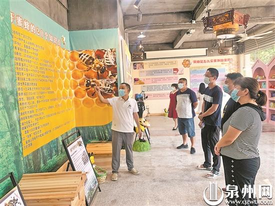泉州网10月13日讯 (记者杨泳红 文/图)“原来蜜蜂分为工蜂、雄峰、和蜂王。”“这些标本可以让人清楚地看到蜜蜂各个时期的发育特点,形象又生动。”“蜜蜂晨出夕归,风雨无阻,真是勤劳又敬业。”近日,南安市前锋小学与格内小学的学生到南安诗山镇梧埔山村的蜜蜂科普馆参观研学,收获不少。据了解,这个蜜蜂科普馆由当地养蜂专业合作社所建,自今年7月份起免费向群众开放。