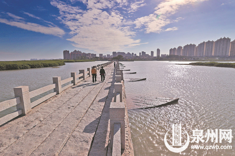 遭遇天文大潮,洛阳桥宛如一道浮桥。