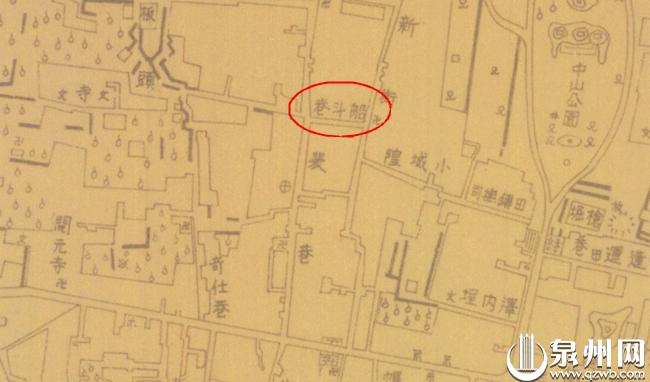 鲤城区档案馆内收藏的一张老地图,有“船斗巷”,即现在清军驿东段。(鲤城区档案馆供图)