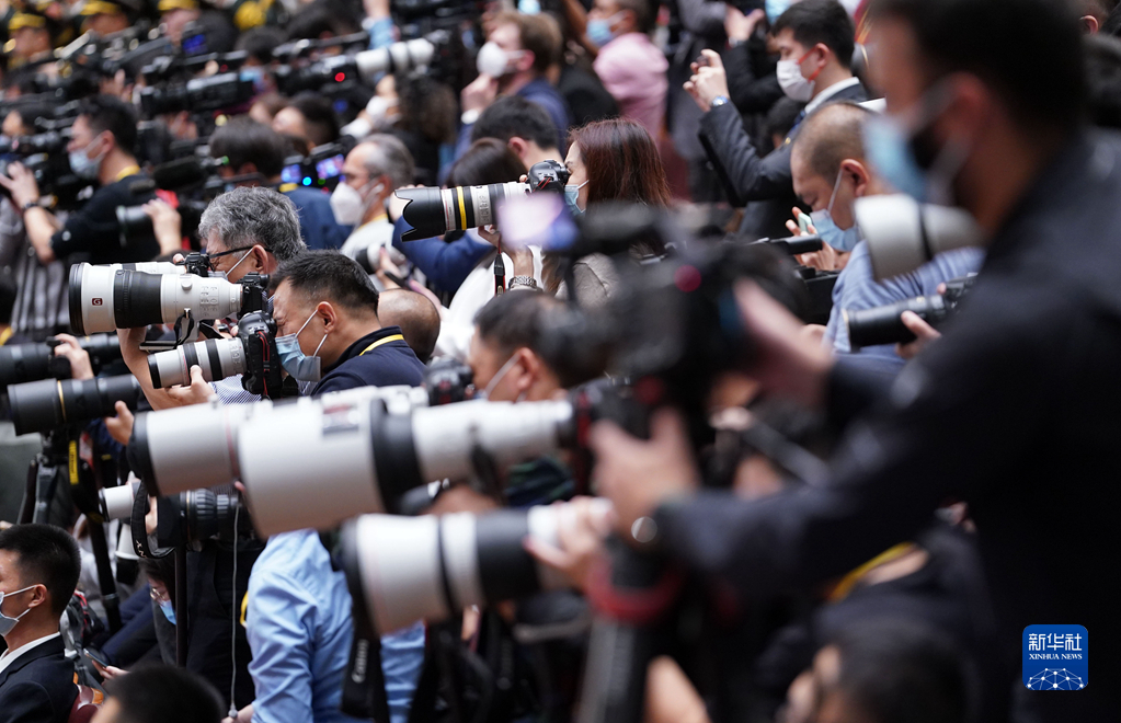 10月16日,中国共产党第二十次全国代表大会在北京人民大会堂隆重开幕。这是记者在采访。 新华社记者 陈晔华 摄