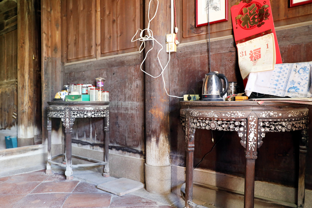 宋宅有双重护厝,尽显大户人家的“高配置”。里外两重护厝之间设有天井长廊,可使房间避免夏季炎热的穿堂风,环境阴凉舒适,其中,第二重护厝长度超过大石埕,与前排沿街店面连接;护厝里设有厨房、储藏间以及佣人的房间等,天井长廊内种有花草,还有两个水井,可满足生活生产需求。