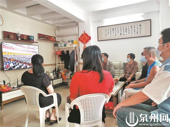 邻居们聚集在黄婉颖家中观看大会直播