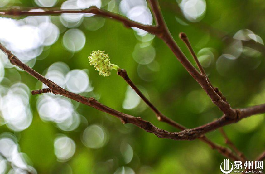 市民口中开花的老桑树是那棵民间流传着“桑开白莲”传说的千年古桑树,位于开元寺紫云大殿后西廊。昨天,记者来到开元寺,只见古桑枝繁叶茂,仔细观看,部分蜿蜒虬曲的枝丫上长出了一串串嫩绿色、长着柔毛的花蕊。“今年三四月份,也曾见这棵古桑树上开出这样的花蕊。”正在树下阅读的一名义工告诉记者,过去不曾仔细观看过古桑树是否年年开花,但今年春季,确是见过桑树开花。