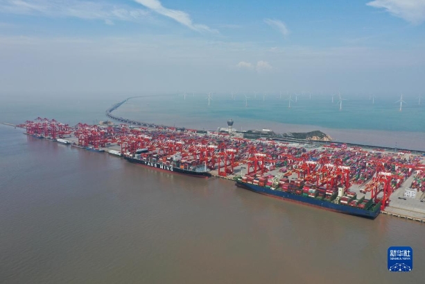 这是2022年9月23日拍摄的上海洋山港集装箱码头(无人机照片)。新华社记者 丁汀 摄