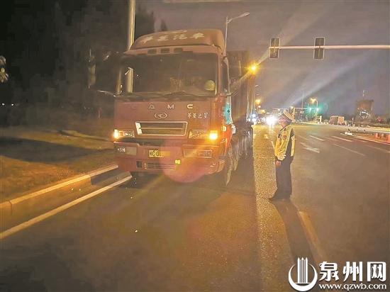 泉州网10月20日讯(记者张晓明 通讯员陈丽珍 蒋巧玲 文/图)沿海大通道陈埭段是许多货车来往泉州、晋江、石狮的必经之路。因为路况好,在个别时段,部分货车驾驶员出现闯红灯、超速、超载等交通违法行为。近日,晋江交警组织开展货运车辆交通违法专项整治,确保道路交通安全形势持续稳定,巩固夏季治安打击整治“百日行动”成果。