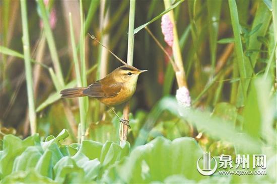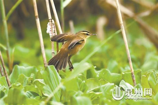 “目前泉州河口湿地保护区内已有多位观鸟爱好者拍摄到黑眉苇莺,因此黑眉苇莺被记录为泉州市第335种鸟类正式发布。”吴轲朝说。(本组图片由董帝伟拍摄)