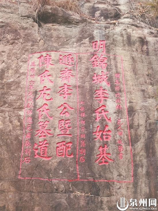 “桃陵书法”“桂亭织画”“翘松诗词”被“马来西亚华人族魂”林连玉誉为“永春三绝”。外碧村陈坂宫的左侧石壁现存有一处“永春第一绝”文物——桃陵公(颜廷榘,1519—1611年,明代书法名家和诗人)榜书摩崖石刻,弥足珍贵。在陈剑虎的引领下,记者看到石刻上刻有“明万历戊戌(1598年)秋 邑人颜廷榘书:明锦城李氏始基。七世孙开芳、开藻刻石。遁斋李公暨配陈氏尤氏墓道。万历廿六年戊戌秋孙应元、应辰刻石”等行楷大字。“永春民间有句俗语称‘全识石壁字,尽收潭底金’,或许这是曾经创造海丝贸易财富神话的陈坂溪沿岸渡口及物产的历史回声吧。”陈剑虎说道。