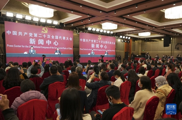 10月21日,中国共产党第二十次全国代表大会新闻中心举行记者招待会。生态环境部党组成员、副部长翟青围绕“建设人与自然和谐共生的美丽中国”主题与记者交流。新华社记者 贾浩成 摄