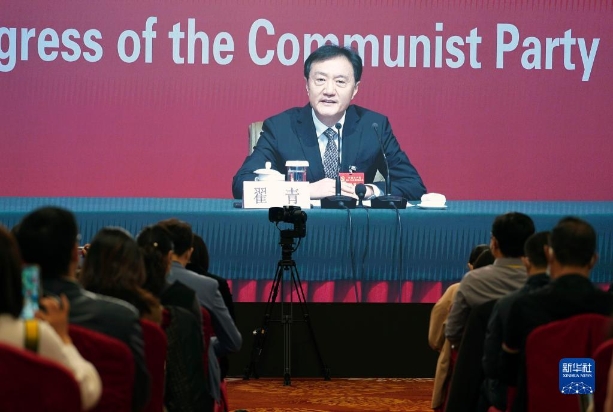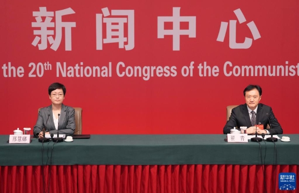 10月21日,中国共产党第二十次全国代表大会新闻中心举行记者招待会。生态环境部党组成员、副部长翟青围绕“建设人与自然和谐共生的美丽中国”主题与记者交流。新华社记者 宋彦桦 摄