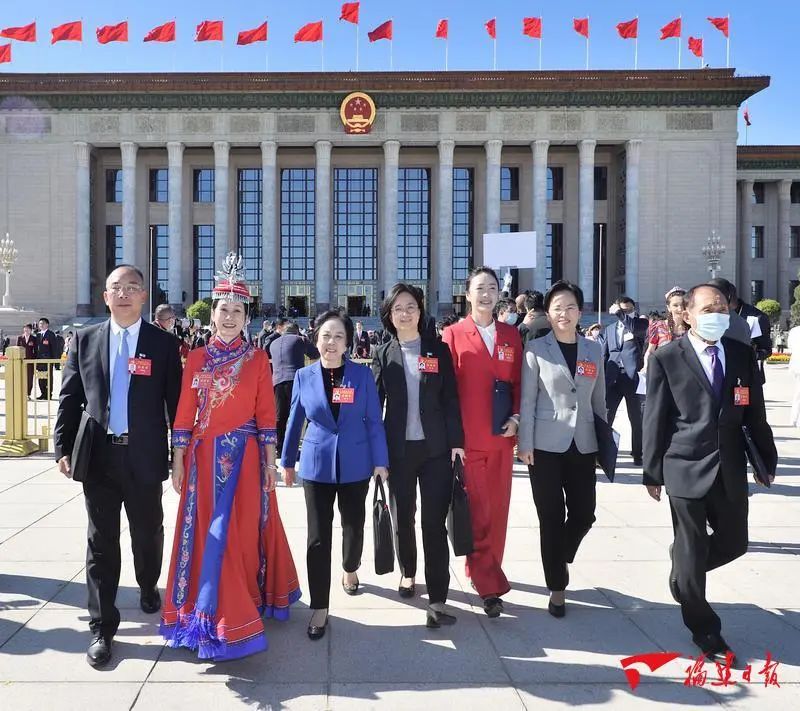 旗帜引领方向,使命呼唤担当。福建代表步出人民大会堂,汇入全国代表之中。展望未来,豪情满怀。迎风飘扬的红旗下,这支队伍不断壮大,必将凝聚起磅礴力量,谱写出新时代中国特色社会主义更加绚丽的华章。