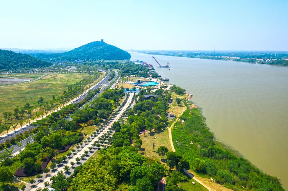 安徽省马鞍山市长江岸线景观带(2022年5月17日摄,无人机照片)。新华社发