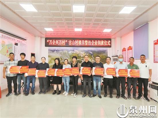 21日,南安市石井镇古山村举行了一场特殊的捐赠仪式。十位爱心企业家捐资10万元,帮扶村里的3户困难家庭开展裸房装修。据了解,作为省级乡村振兴示范村,古山村近年来依照美丽乡村建设要求,积极创建“无裸房示范村”,因“房”制宜、因“户”施策,不仅发动党员干部发挥带头作用,也积极动员乡贤企业以捐资的形式,帮扶困难户,推进裸房整治不落一户。