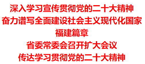 24日,省委书记尹力主持召开省委常委会(扩大)会议,传达学习党的二十大和党的十九届七中全会、二十届一中全会精神,研究部署我省初步贯彻落实意见。会议强调,学习宣传贯彻党的二十大精神是当前和今后一个时期的首要政治任务,要深刻领悟“两个确立”的决定性意义,增强“四个意识”、坚定“四个自信”、做到“两个维护”,切实把思想和行动统一到党的二十大精神上来,高举中国特色社会主义伟大旗帜,全面贯彻习近平新时代中国特色社会主义思想,扎扎实实办好福建的事情,在推进中国式现代化中彰显福建担当、展现福建作为,奋力谱写全面建设社会主义现代化国家福建篇章。省委副书记、省长赵龙,省政协主席崔玉英出席。