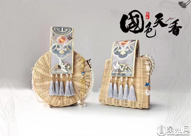 传统梅屏刺绣与藤铁手工艺品相结合,创作出新潮时尚的文创新品。(图片来源:泉州网)