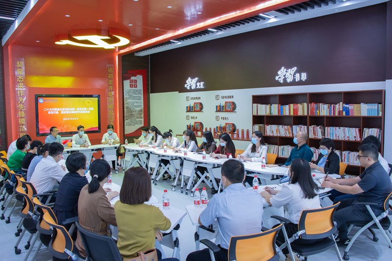 在学校机关第一党总支第一支部座谈交流会上,温文溪结合自身成长经历,分享了参加党的二十大的所见所闻所感。与会的党员教师代表非常珍惜与二十大代表面对面交流的机会,现场互动十分热烈。大家结合连日来学习党的二十大精神的感想体会,与温文溪展开讨论。温文溪在互动中以代表的第一视角和独到见解为与会人员答疑解惑,与会人员纷纷表示收获良多。
