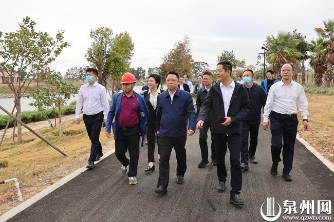 11月1日,省委常委、市委书记刘建洋到泉港区调研坝头溪流域综合整治项目(菜堂湿地公园)。 (陈起拓 摄)