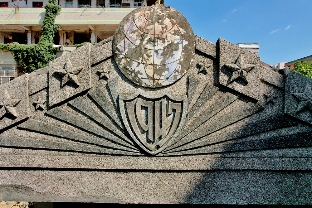 楼顶山花两侧是放射状线条和五角星,中间是美术字体“1947”,记载着大楼落成的年份,美术字上面是一幅地球图案,以前有一只雄鹰踩在地球之上。如今的7号洋楼内部已重新装修,但外观仍保留着70多年前的恢弘模样。