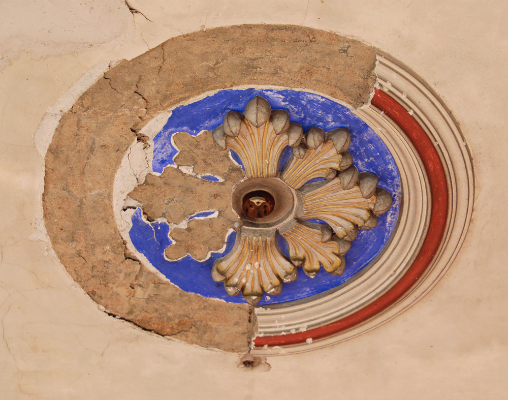 8号、9号两栋洋楼的大门入口天花板均有一个类似茛苕叶的变形装饰,因雕饰精美,引来众多模仿者,只是这种工艺如今很难再现。大门两侧均有早年建造时写下的家风家训,后来改刷成标语,如今字迹均已模糊,徒留时代的印记。