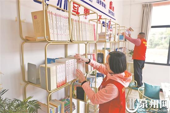志愿者在双洋村乡村公益图书馆整理书籍