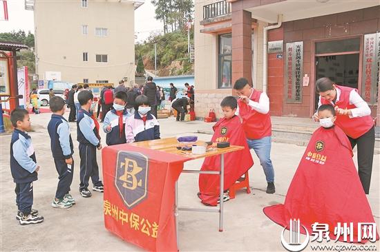 在村委会门口,义剪正热热闹闹地进行着。来自泉州市中保济困公益慈善中心的义剪志愿者,免费给村里的老人、小孩理发。“孩子头发很长了,一直没时间去镇上理发,现在志愿者上门服务,我们省了很多麻烦。”一位妈妈带着儿子来理发,开心地说。