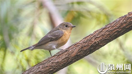11月12日清晨,观鸟爱好者傅师伟和家人一起到清源山天湖和南台岩等处观鸟时,在10时30分左右,偶然见到树上有几只喉、胸处有鲜艳橘黄色的小鸟在枝头跳跃。他随即和家人用两台相机拍了不少照片,后经林业局及观鸟学会共同确认是鸲(qú)姬鹟(wēng)。