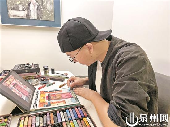 他说,不少画家画泉州时,往往选择的是一些著名景点,画“大景”,而他选择了存在感较低的门作为创作对象。“门常常会被忽略,甚至会被主人忽略,但我觉得每一扇门都有独特的故事。”他希望,以一小张一小张的画面构成大画面,吸引更多人的注意。