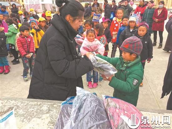 图为东南公益给西藏地区的孩子们送去冬衣和学习文具。(资料图片)