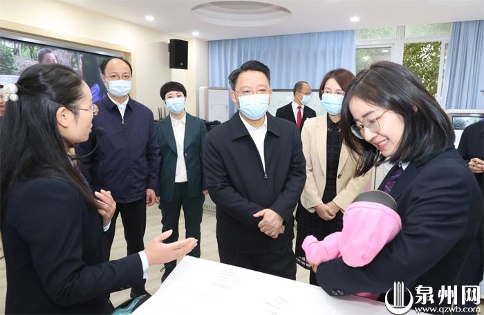 刘建洋来到泉州幼儿师范高等专科学校,参观校史馆、特殊教育和学前教育实训室,检查防疫措施落实情况,希望学校扎实抓好教学质量和疫情防控,加大与各县域校地合作办学力度,让实训基地在基层校园遍地开花,更好赋能教育一线。
