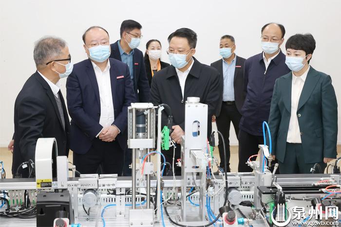 黎明职业大学是泉州唯一入选国家“优质校”、国家“双高计划”建设单位的院校。刘建洋对智能制造实训中心、高分子材料加工技术专业群实训基地和智慧教学中心的教学成果、育才模式给予肯定,指出学校专业和学生技能要适应地方产业需求,才有用武之地。学校要不断拓展校企合作,将理论研究与应用研究紧密结合起来,把企业中试生产线搬进校园里,把实训基地建到企业车间中,实现更高水平的产教融合。