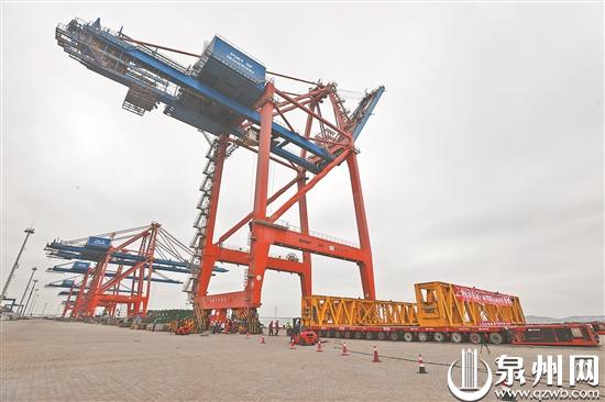 泉州港石湖作业区新建的5号泊位投产在即。近日,石湖作业区两台近1400吨的岸桥顺利搬迁至5号泊位,为5号泊位竣工投产打下坚实基础。