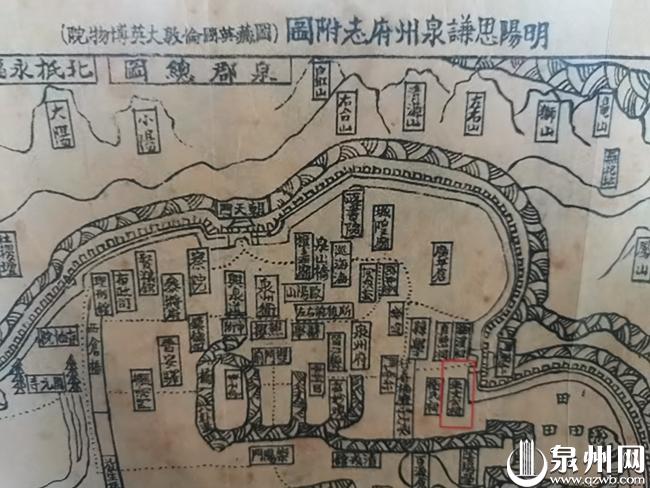 明代泉州地图上,朱文公祠所在的位置正是如今的东门实小。(东门实小/供图)