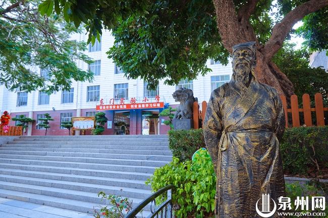 据东门实验小学校长李才群介绍,东门实小的前身是宋咸淳三年(1267年)创办于行春门外(今泉州市第一医院内)的泉山书院,书院并祀朱子,弘扬朱熹的学说。明正德十年(1515年),书院移至如今东门实小所在地,立朱熹像于其中。清乾隆七年(1742年)更名为温陵书院。因为有着与朱熹千丝万缕的联系,朱子文化成了东门实小最大的特色之一,学校的老校歌“鲤东今校舍,弟子就学宫,朱子祠景仰先哲遗容”,到新校歌“朱子祠,鲤城东,刺桐花开分外红”,弘扬朱子文化一直是学校的重点。