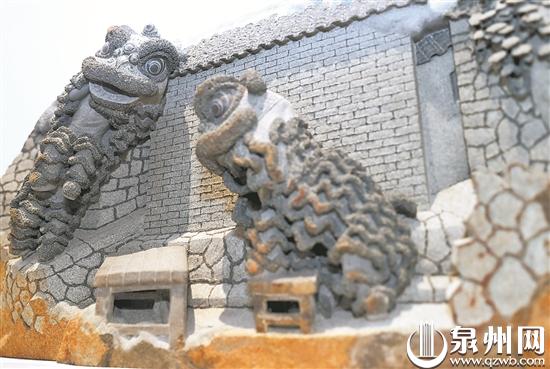 王向明介绍,说起南派石狮,不得不提出生于清代康熙年间的惠安工匠李周。李周是惠安县崇武镇五峰村人,是业界公认的南派石狮的开山鼻祖。在李周摸索出南狮之前,惠安工匠打造的石狮都为面朝前端坐、表情威严的北狮形象。有一次,李周将师傅不小心敲坏的石狮进行了改造,创作出了“转头狮”的形象。与北狮威严的形象不同,一公一母转头相视的南狮活泼可爱,笑容可掬,赢得了世人的喜爱,也从泉州走向全国,走向世界各地。