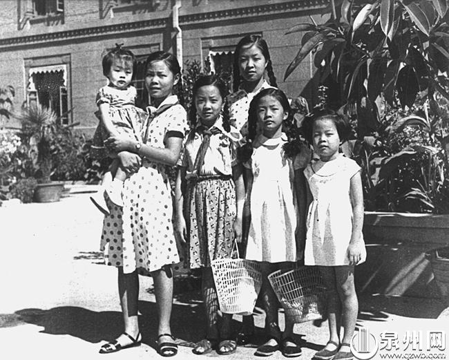 1958年,司马文森为6个爱女在外交部招待所前拍照。