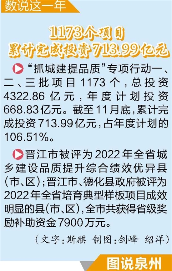 今年以来,泉州市以“抓城建提品质”专项行动为抓手,推动古城新城联动发展、市区县域同步推进,努力实现城市能级和品质双提升。