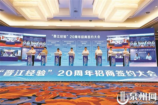 8月中旬,纪念“晋江经验”20周年招商签约大会举行。大会集中签约400个重大项目,总投资4160亿元。项目涵盖电子信息、石油化工、金融与新兴产业、纺织鞋服、装备制造、生物医药、现代服务、数字经济、海洋经济、文旅经济等领域。