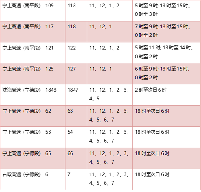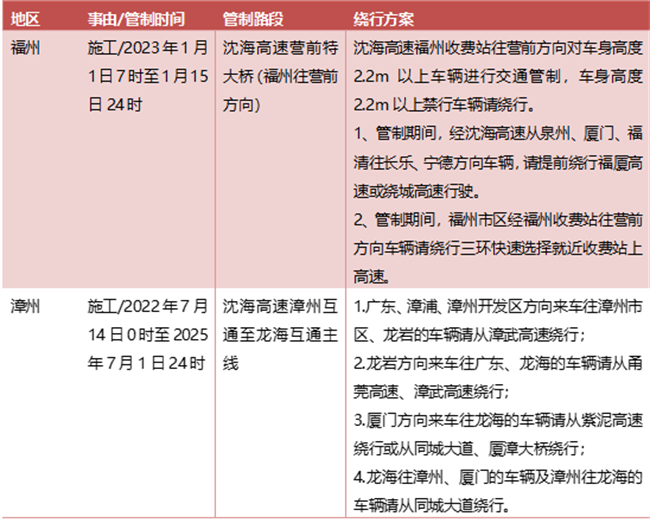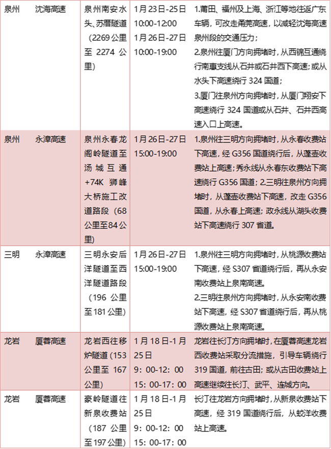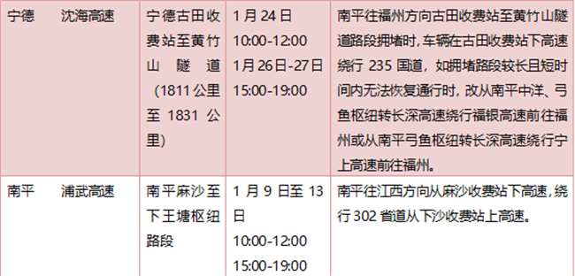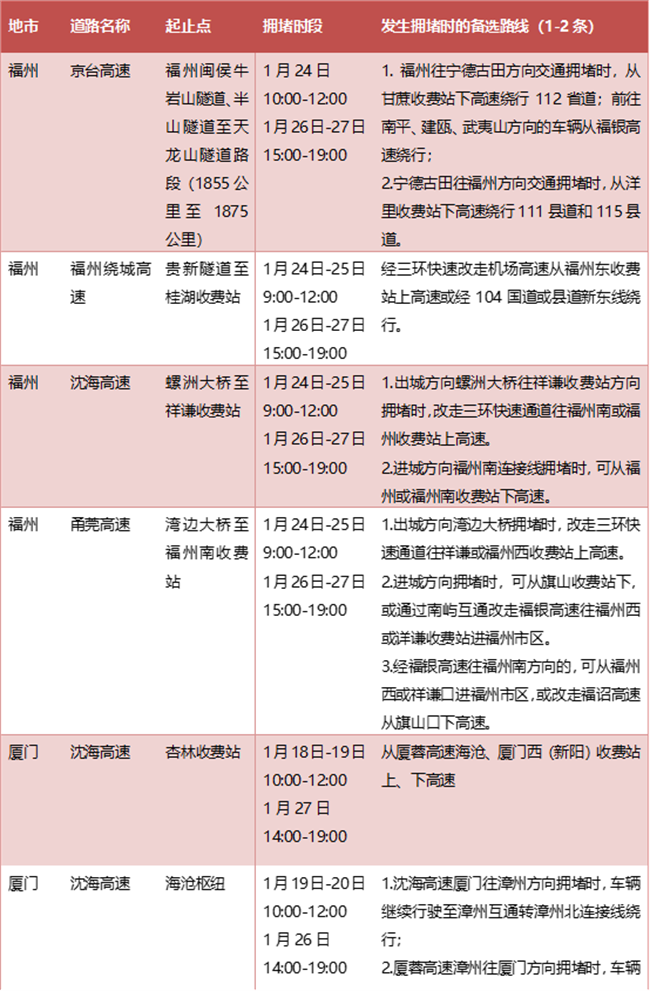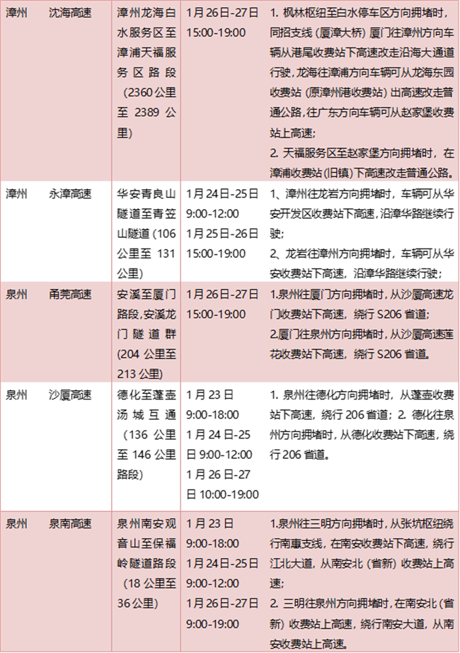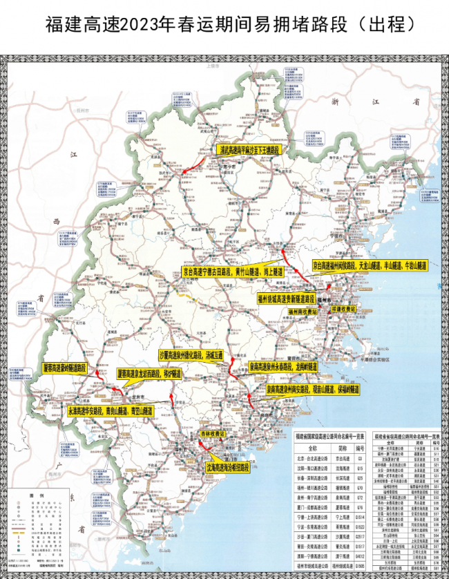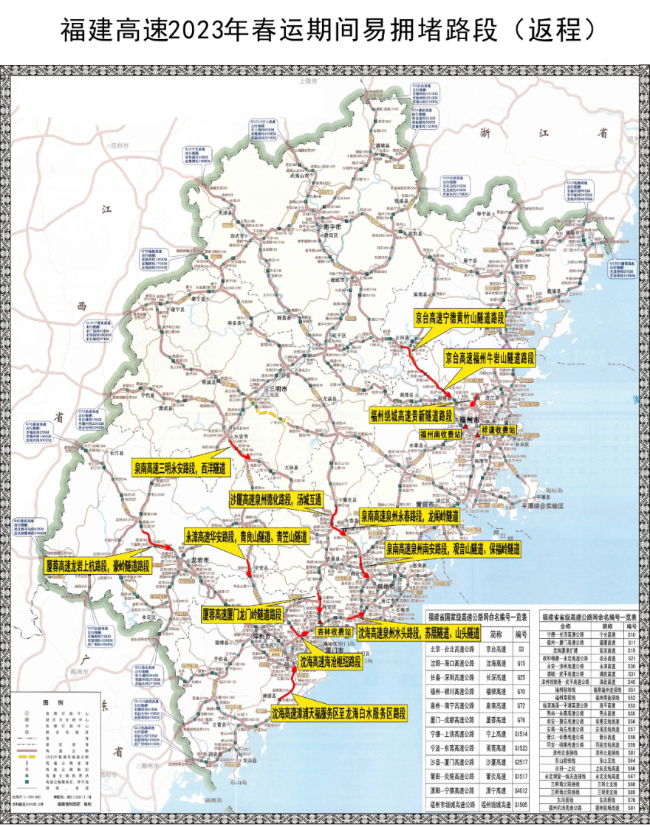 福建高速2023年春运期间重点路段