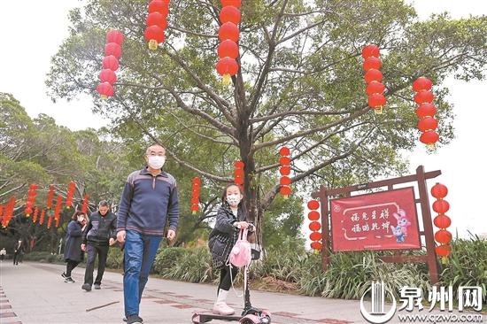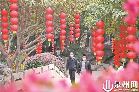 泉州网1月20日讯 (记者林福龙 庄丽祥 通讯员许晓岚 文/图)春节临近,不少市民朋友会发现,泉州市区几大公园已陆续挂起大红灯笼,在几个主要入口摆时花、塑造型,营造喜迎新春的氛围。据泉州市城管局公园中心有关科室负责人介绍,市区几处公园挂的灯笼数量已有近4000盏,并添加了一些一串红等喜庆花卉做点缀。