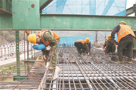 除夕一早,记者来到位于永春县达埔镇岩峰村的泉南及沙厦高速公路改扩建项目A2标段岩峰主线1号桥施工现场,爬上30多米高的右幅11#桥墩,只见20多平方米的工作面上,10余名工人正忙着悬浇梁施工,大伙儿都开足了马力抢工期。