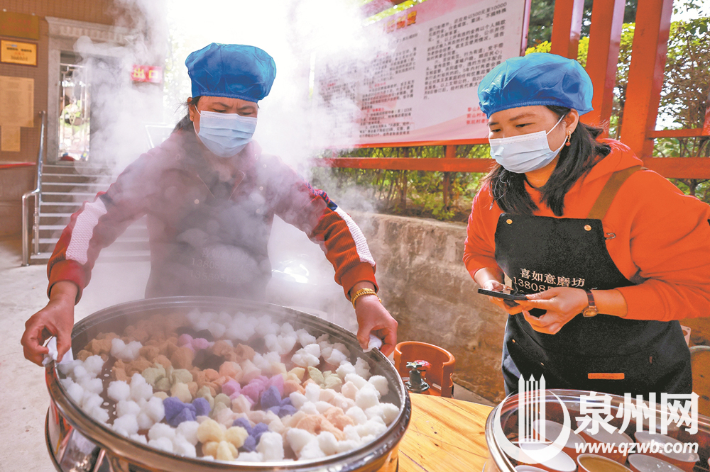 晋江内坑镇黎山村开展蒸碗糕比赛,欢度春节。(雅玲 诗琳 刘翼 摄)