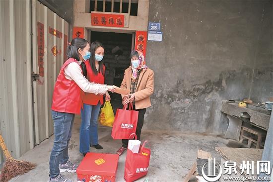 “你要照顾好自己和母亲,外出做好个人防护。”在洛阳镇西方村刘秀恋、汪文水母子家,泉州大万网络科技服务有限公司负责人施吉丽向汪文水送上慰问红包,叮嘱他们注意做好个人防护。