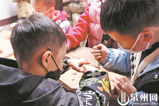 孩子们体验砖雕技艺