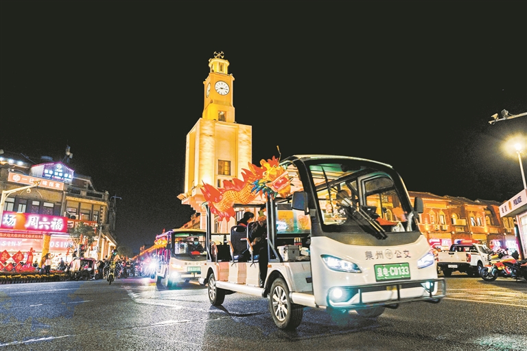 月牵古塔千年影,虹挂长街十里灯。花车花灯巡游展已经启动,将持续至2月3日,游客市民们可以在街巷中感受到浓郁的元宵氛围。花车花灯巡游展包括流动花灯展及微型花车巡游展,再现闽南春节元宵花车巡游的传统风俗。