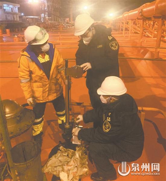 泉州网1月30日讯 (记者刘倩 通讯员赵立洲 李智龙 钱林龙 文/图)1月22日(正月初一)晚7时许,泉州海关驻泉港办事处一线关员在斗尾港区登上载有28万吨原油的“凯湘”轮,开展船舶登临检疫、原油取样、货物查验等作业,不到2小时便予以放行卸货。